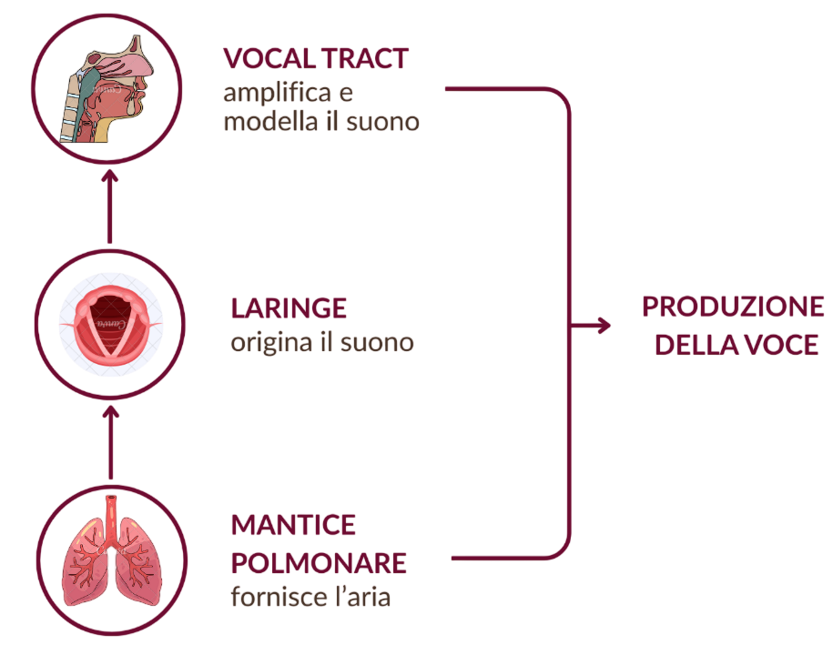 La produzione della voce è il risultato dell’equilibrio tra tre sistemi principali: